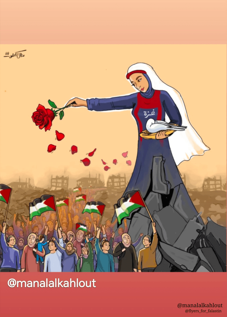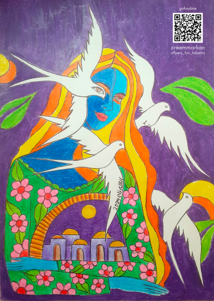 Ilustrasi pada laman ini adalah karya para seniman Gaza yang dikumpulkan oleh Flyers for Falastin. Nama dan akun IG masing-masing dibubuhkan pada tiap karya, juga QR code ke penggalangan dana untuk seniman tersebut. Menyumbanglah untuk menghargai karya mereka jika mampu. Terima kasih.